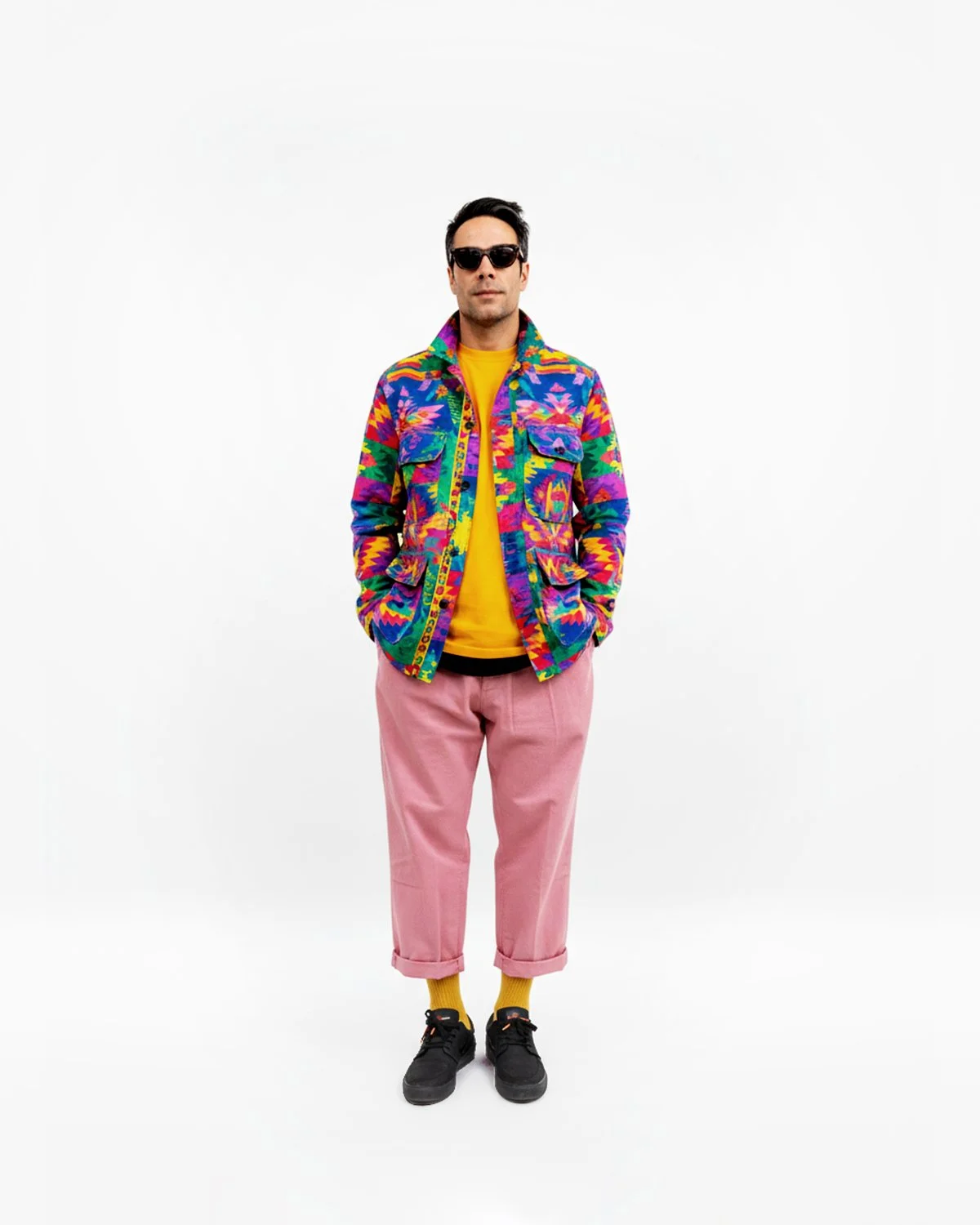 He creates from the memory of the child he still is and the intuition of the adult who hasn’t lost his sense of wonder. His aesthetic draws from the imagery of the '80s, from popular art, from vibrant visual culture—but also from the need to question what we’ve been taught to call “good taste.” While the world turns grey, he chooses to saturate.